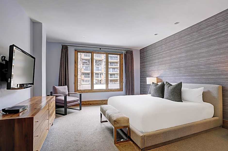 This family room features free Wi-Fi, a fireplace, a work desk, a flat-screen TV and ski equipment storage. An private bathroom with plush bathrobes is also included.